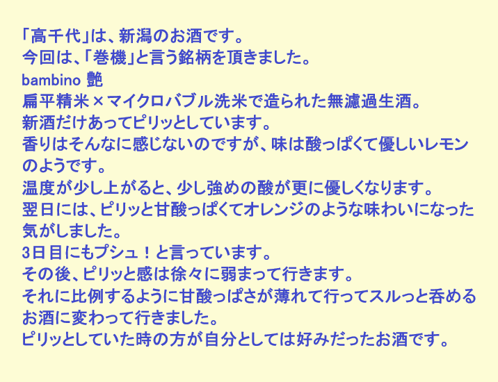 新しく開けたお酒:巻機(新潟)