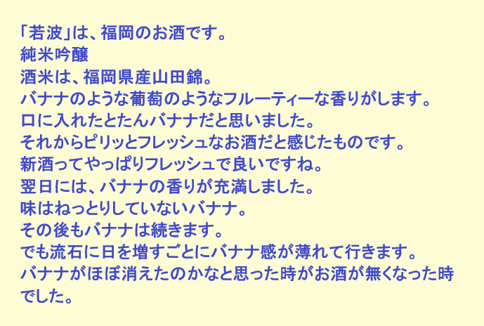 新しく開けたお酒:若波(福岡)
