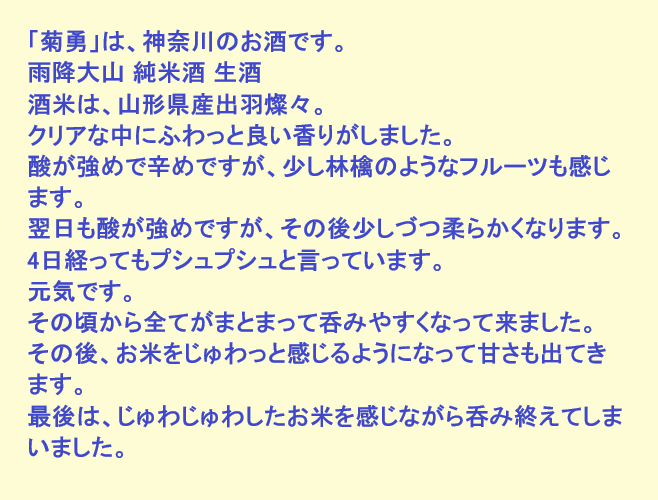 新しく開けたお酒:菊勇(神奈川)