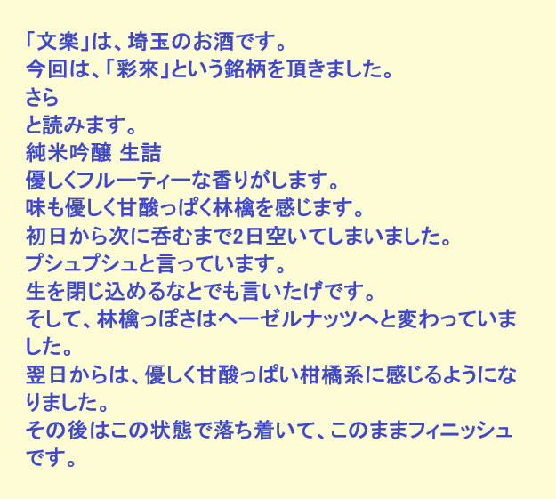 新しく開けたお酒:彩來(埼玉)