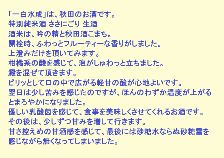 新しく開けたお酒:一白水成(秋田)