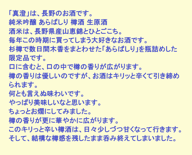 新しく開けたお酒:真澄(長野)