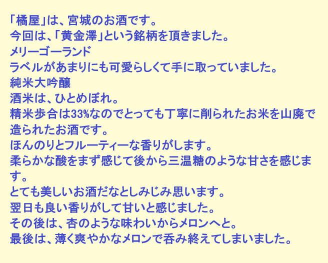 新しく開けたお酒:黄金澤(宮城)