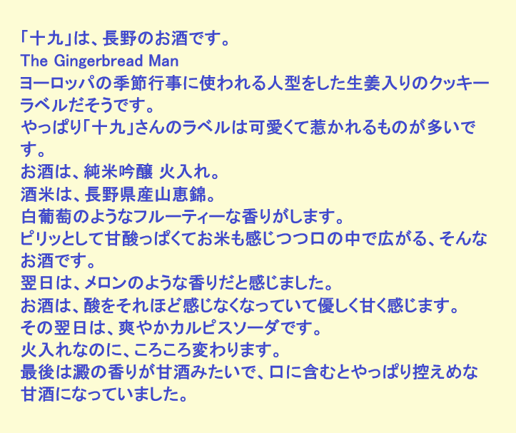 新しく開けたお酒:十九(長野)