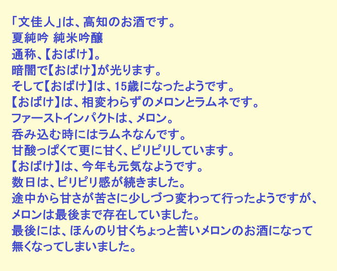 新しく開けたお酒:文佳人(高知)