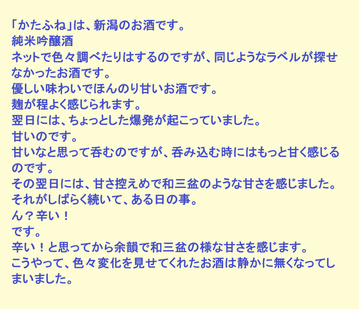 新しく開けたお酒:かたふね(新潟)