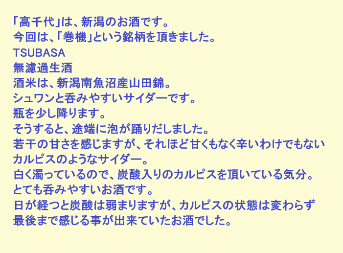 新しく開けたお酒:巻機(新潟)