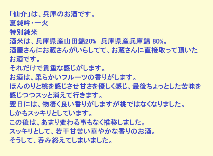 新しく開けたお酒:仙介(兵庫)