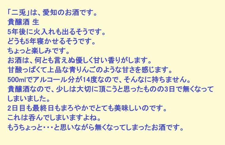 新しく開けたお酒:二兎(愛知)