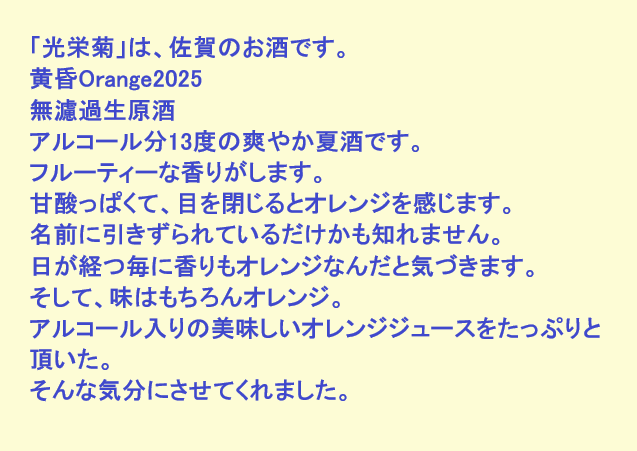 新しく開けたお酒:光栄菊(佐賀)