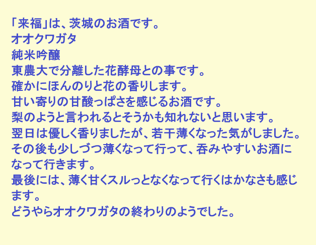 新しく開けたお酒:来福(茨城)