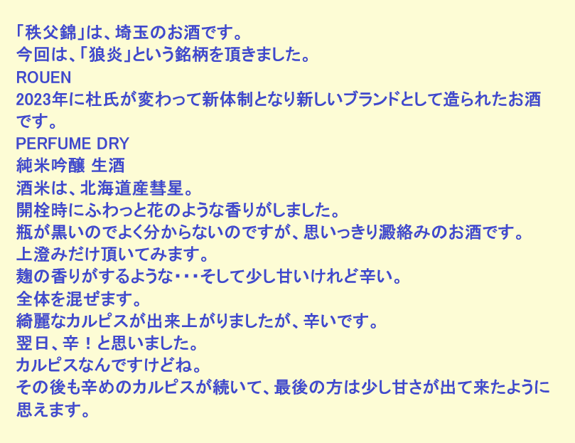 新しく開けたお酒:狼炎(埼玉)
