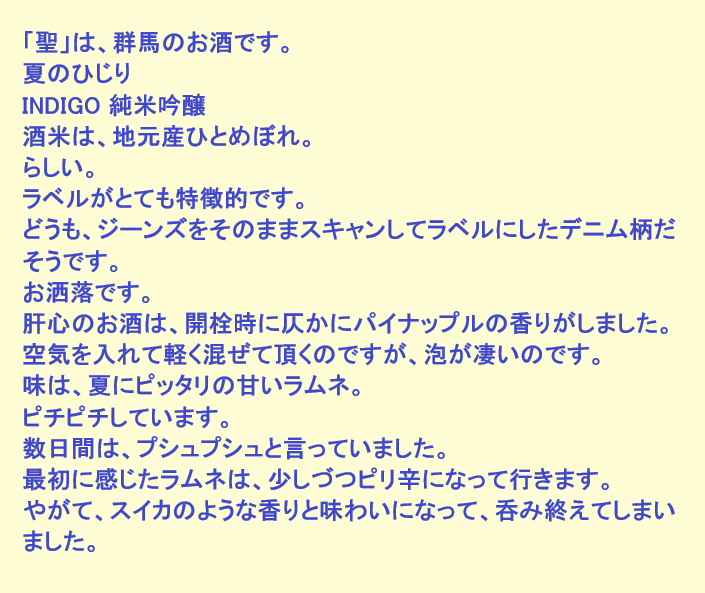 新しく開けたお酒:聖(群馬)
