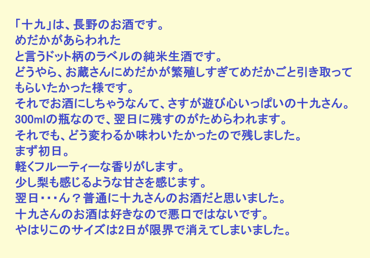 新しく開けたお酒:十九(長野)