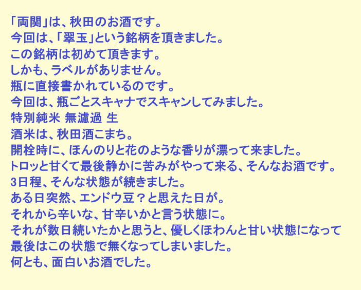 新しく開けたお酒:翠玉(秋田)