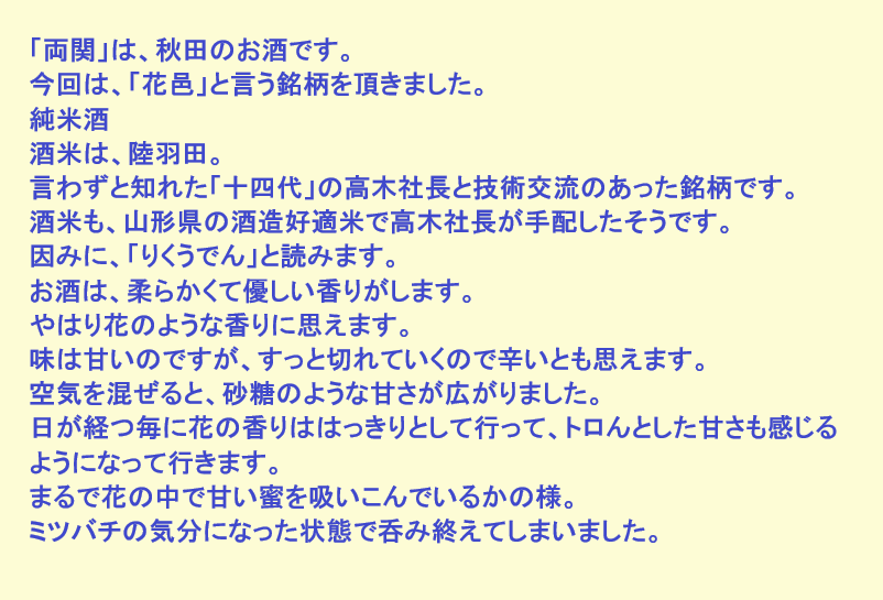 新しく開けたお酒:花邑(秋田)