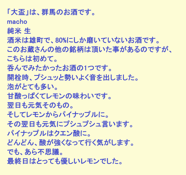 新しく開けたお酒:大盃(群馬)