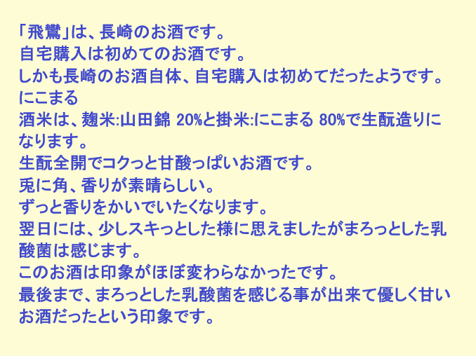 新しく開けたお酒:飛鸞(長崎)