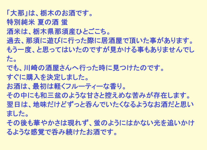 新しく開けたお酒:大那(栃木)