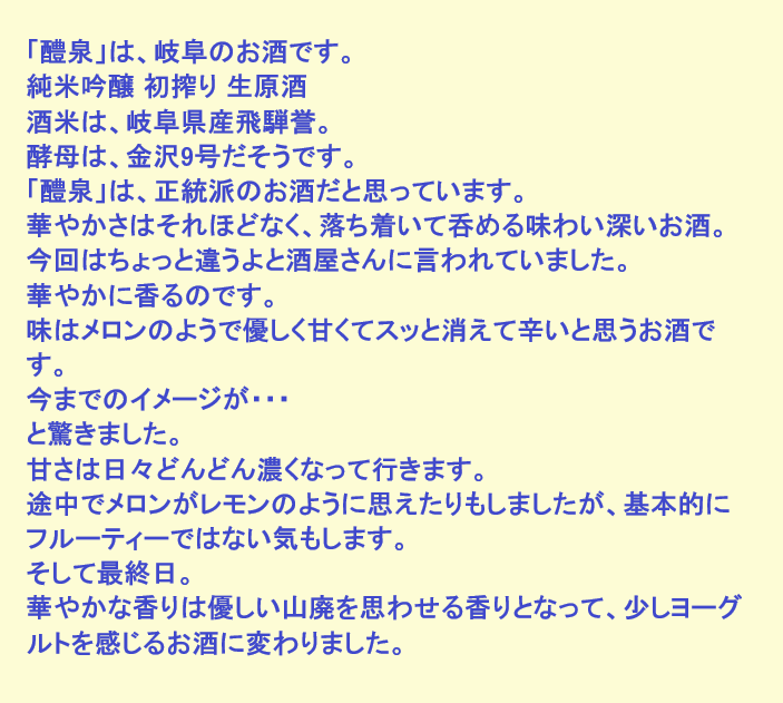 新しく開けたお酒:醴泉(岐阜)