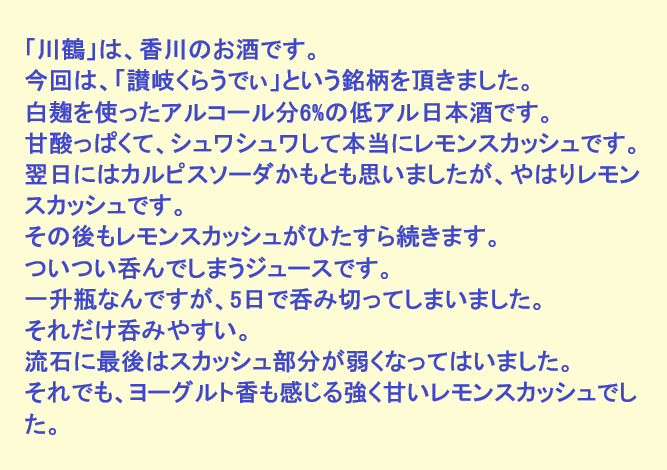 新しく開けたお酒:川鶴(香川)