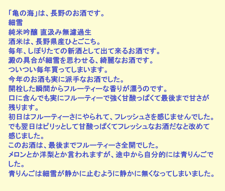 新しく開けたお酒:亀の海(長野)