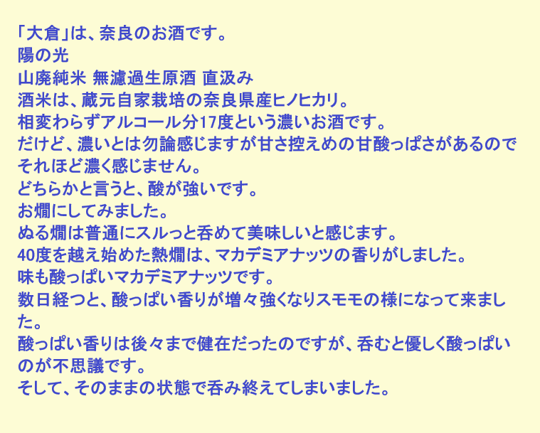 新しく開けたお酒:大倉(奈良)