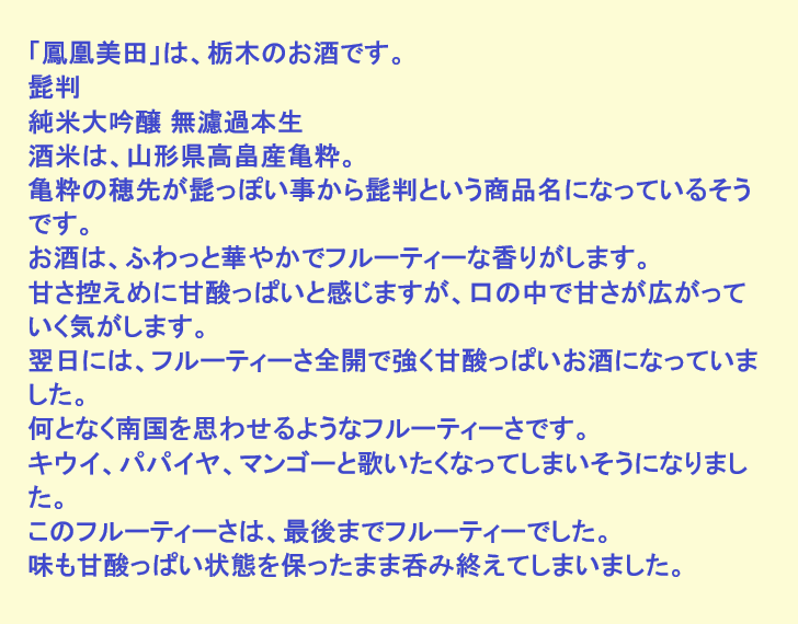新しく開けたお酒:鳳凰美田(栃木)