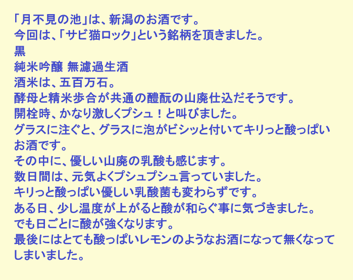 新しく開けたお酒:サビ猫ロック(新潟)