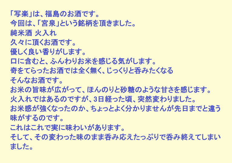 新しく開けたお酒:宮泉(福島)