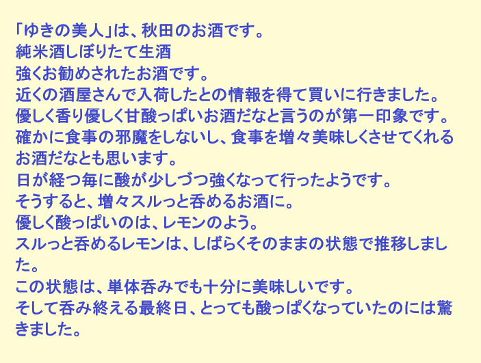 新しく開けたお酒:ゆきの美人(秋田)