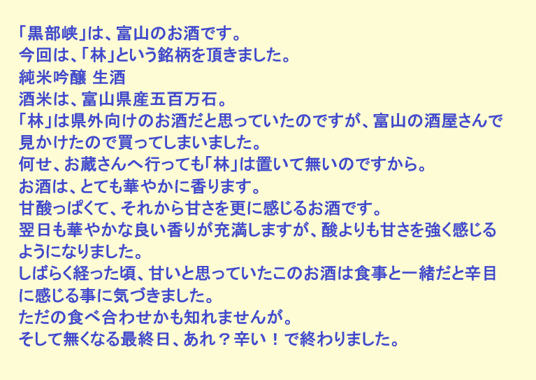 新しく開けたお酒:林(富山)