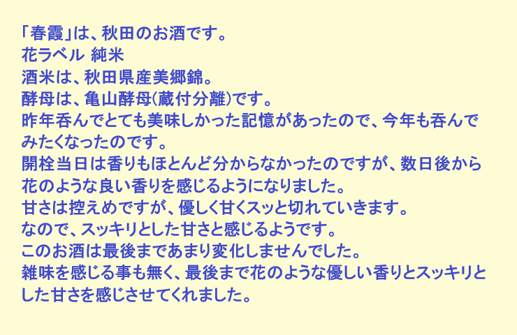 新しく開けたお酒:春霞(秋田)